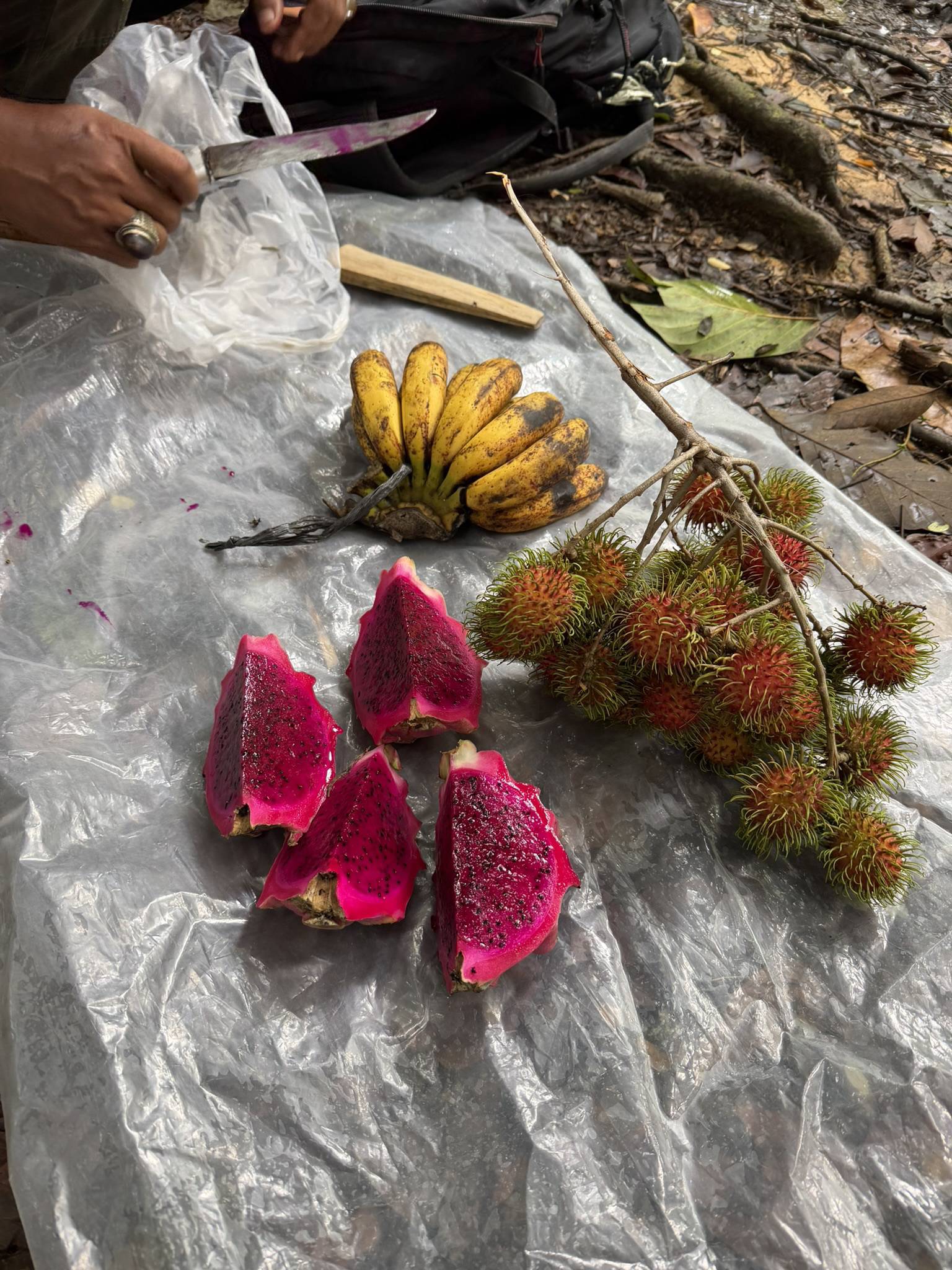 Tijdens een korte pauze maakt de gids fruit voor je klaar, een klein en authentiek moment in de jungle. Na enkele uren keren we terug naar het dorp. Modderige schoenen maar een hoofd vol indrukken. Deze jungletrekking laat je voelen hoe bijzonder het is om helemaal op te gaan in de natuur —een paar uur midden in de jungle te staan en onderdeel te zijn van iets dat zoveel groter is dan jezelf.